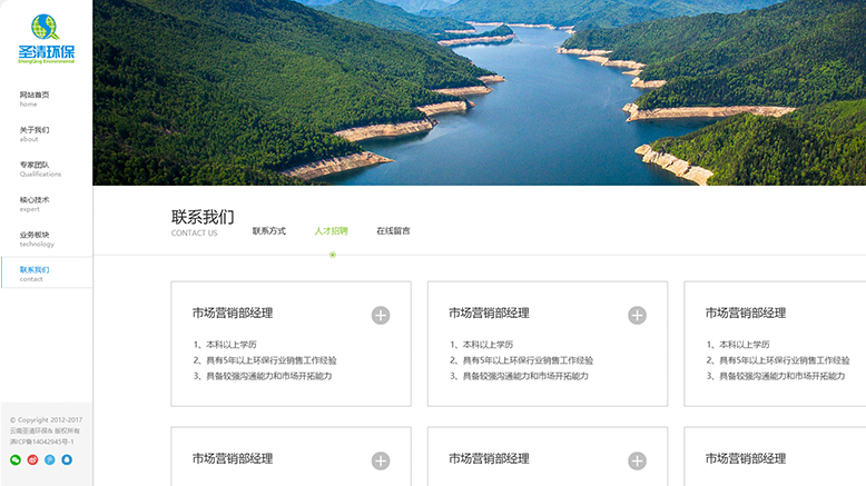 網站設計總體的色調延用VI運用標準色,banner以“天人合一,創(chuàng)建圣潔清新之地”為使命,打造“自然保護區(qū)生態(tài)恢復”為主題,留住用戶第一印象,增強品牌形象,另外導航欄在左側顯示,力求在視覺上打破傳統(tǒng)的方式,給人眼前一亮的感覺。